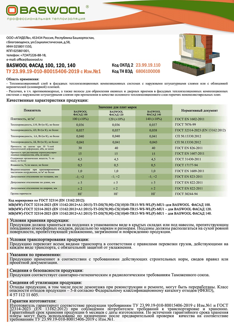 Теплозвукоизоляционные плиты BASWOOL ФАСАД упаковывают в соответствие с требованиями ГОСТ 25880 и