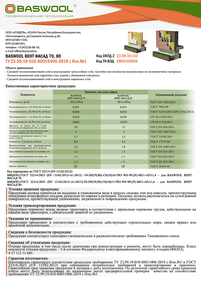 Заключение - Басвул ВЕНТ ФАСАД без ветрозащиты