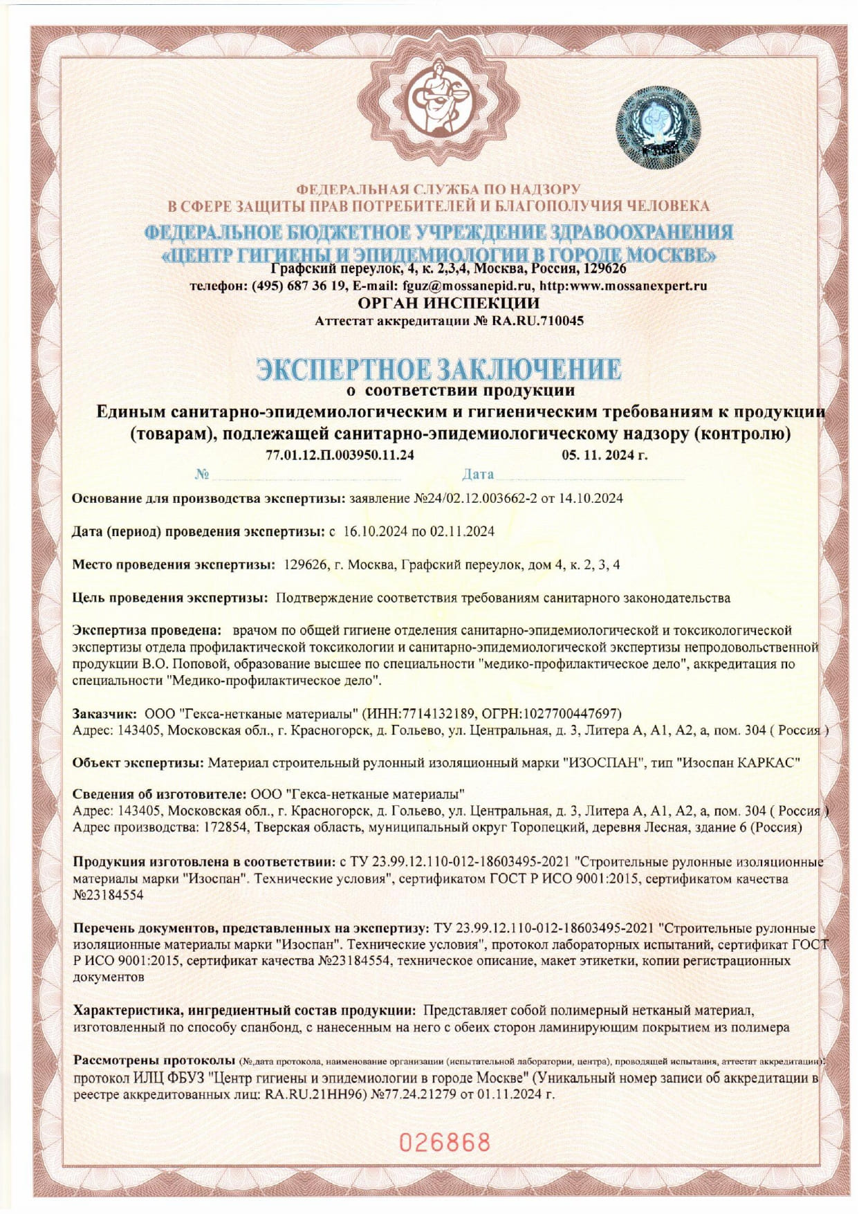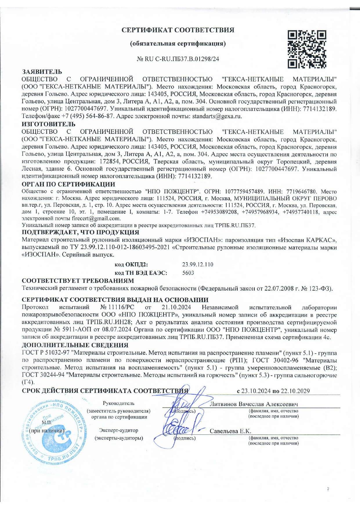 Пожарная безопасность Изоспан Каркас 22.10.2029